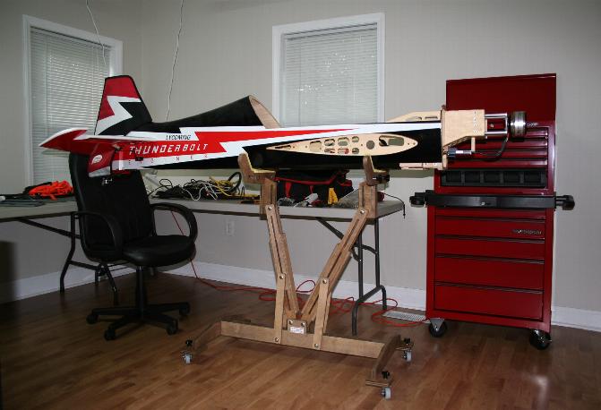 This is the Robart super stand that's available at almost all Hobby Shops. It's light, inexpensive and surprisingly durable. Works great for larger models, but might not be a good fit for those 25% and up creations!