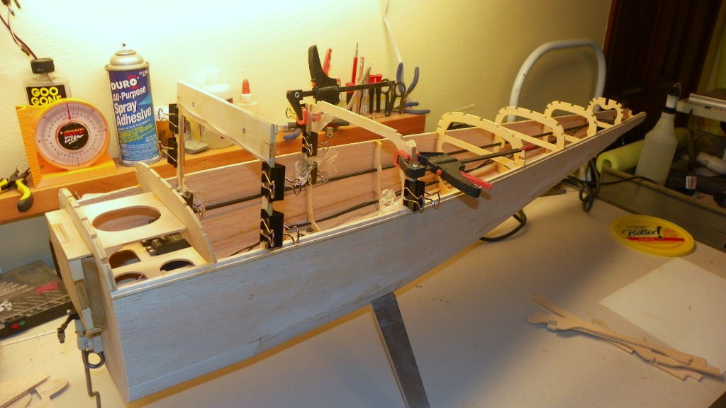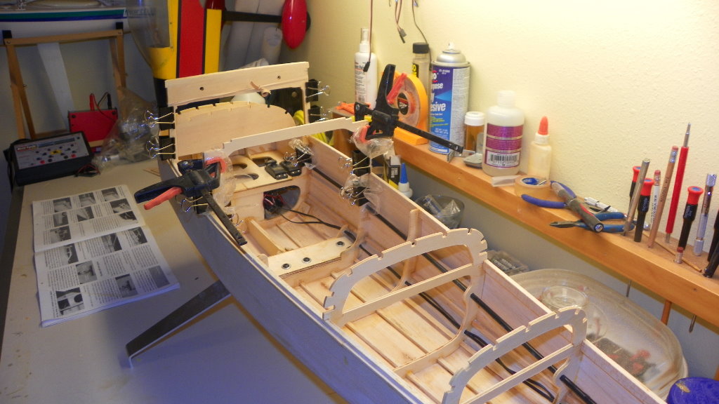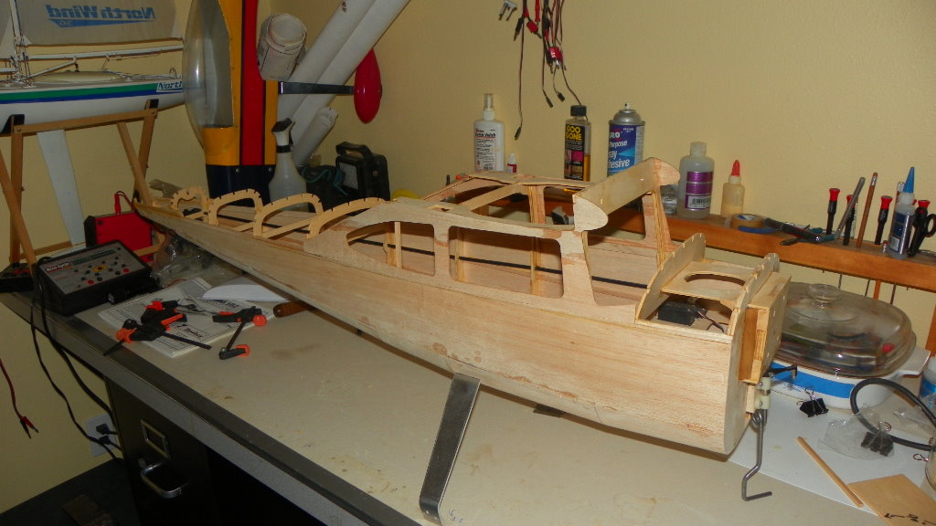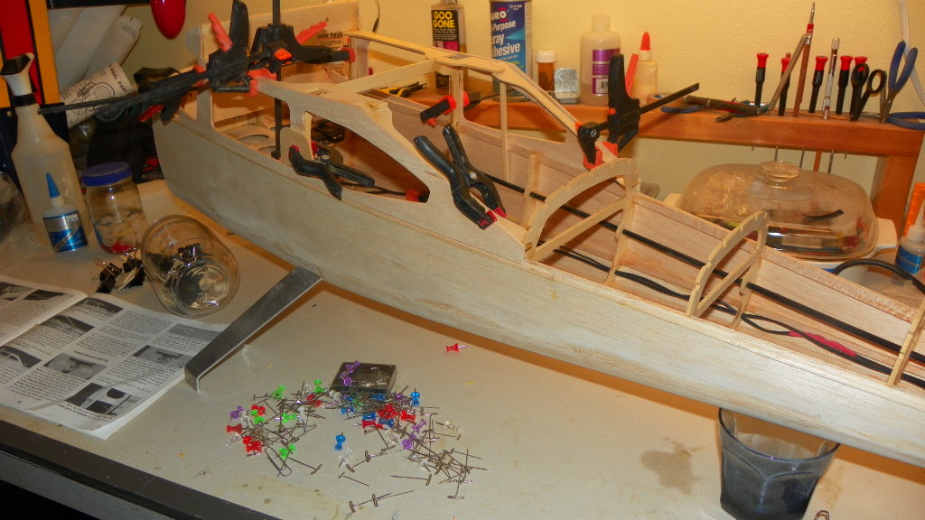 I haven't got much done on the cessna.I got side tracked again.I put a trolling motor on my kayak. It was a present to me from me. I'm getting ready for my 75 th birthday. I did get the front top sheeting done and it was not fun. I hope the fun starts soon