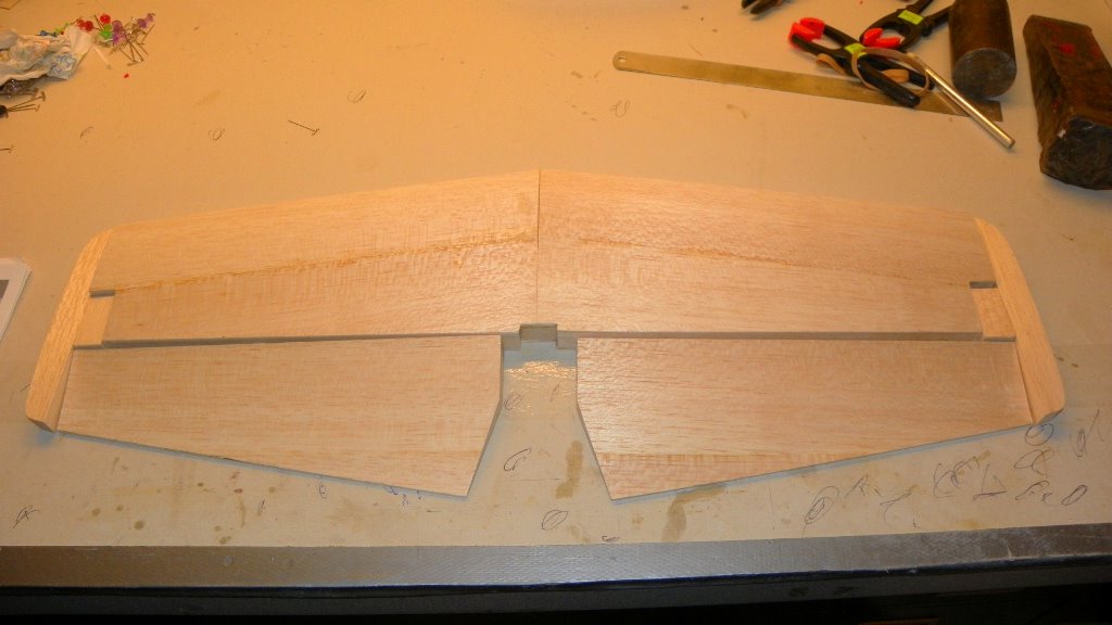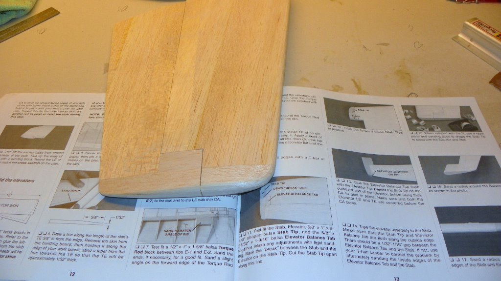 Well i finished the sheeting on the stabilizer.I got the elevaor built and sheeted.Now comes the FUN part. Carving the tips. I don't know if I'm a good carver or a bad carver. I guess we will find out.