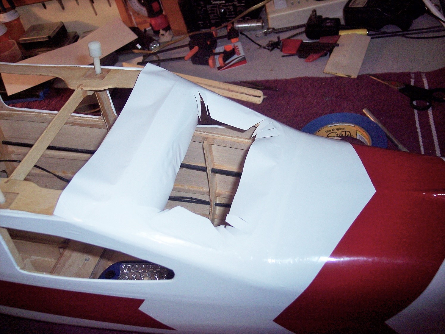 I managed to get a little more done on the Cesnna . At this rate I might get it done by the next GAD[ General aviation Day ] I finished the bottom by making a template with paper and then cut it out the Monokote. I don't know if that's the right way, but it has been working for me. Next I need to do the sides. Here's the latest pictures.