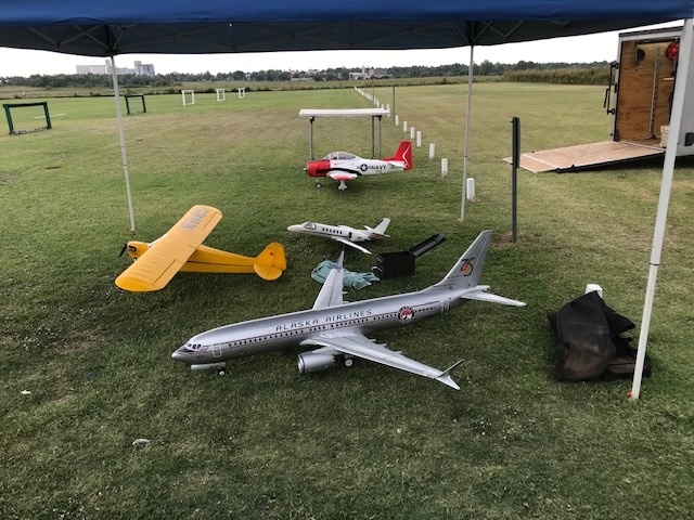 Well another S.A.D. is over. Attendance was light but if you made it out you had a great day of flying. Although it was overcast, we only had some light drizzle on and off. It never got wet enough for the grass on the runway to get your planes wheels wet. It did help keep the temps down. The wind was non-existent for the most part. Flying didn't stop until 5:00 pm. Thanks to Kip for supplying the burgers and cooking them to perfection. Here are some pictures from the day.