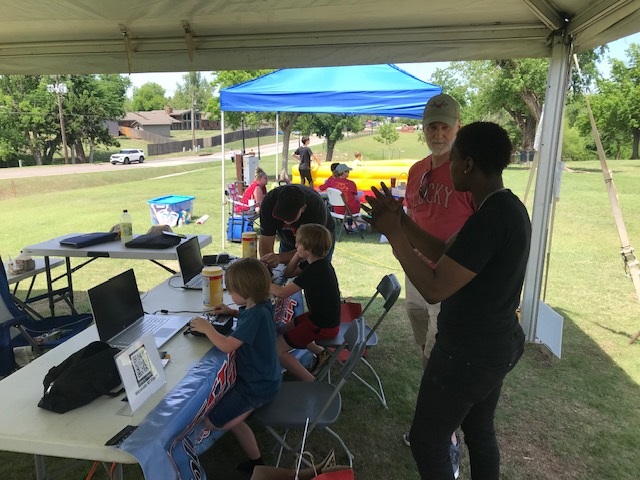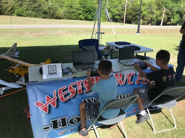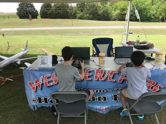 On May 6th the club had a booth at the Yukon Festival of the Child. For those who don't know, this is a day long event held by the city of Yukon to give kids a chance to come to the park and participate in multiple games, activities and programs. We set up a static display of aircraft and ran 2 real flight simulators all day. It was a big hit with the kids. We estimate over 80 kids (and a few parents) flew the simulators and asked questions. A big thank you to Phillip Owens and Mike Hankins for helping to run the booth. Here are a few pictures from the day.